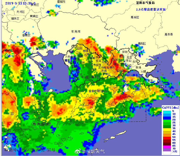 預(yù)計(jì)全市1-2小時(shí)內(nèi)將出現(xiàn)20-40毫米局部50毫米降水,深圳市氣象臺(tái)于2019年06月13日08時(shí)將暴雨黃色預(yù)警擴(kuò)展至全市,全市處于暴雨戒備狀態(tài),請(qǐng)注意防范。