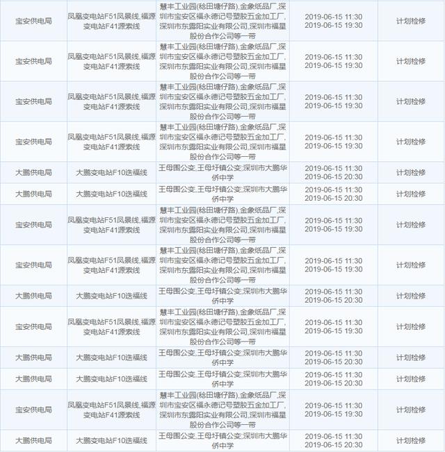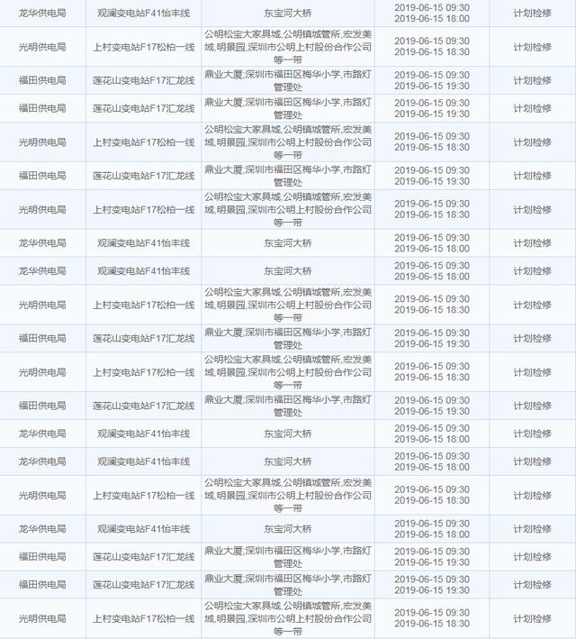 南方電網(wǎng)發(fā)布6月13日至6月16日深圳停電計劃 涉及多個區(qū)