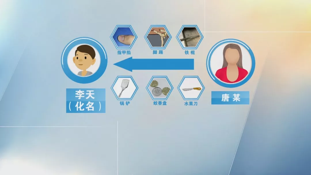 5月30號(hào),唐某以李天洗碗沒(méi)洗干凈為由,用金屬漏勺抽打其手臂背部及頭部,導(dǎo)致李天頭部嚴(yán)重出血,后經(jīng)鑒定為輕微傷。