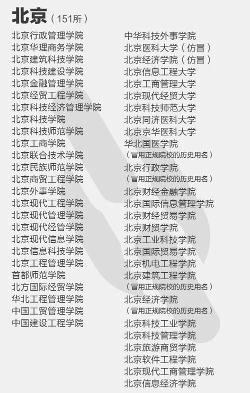 全國392所“野雞大學”名單↓