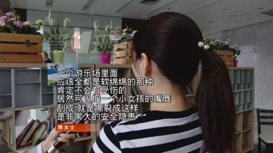 陳女士告訴記者,6月14號(hào)那天,女兒在泡泡池里玩的正開心,沒想到在一個(gè)臺(tái)階處,孩子轉(zhuǎn)身去抱一個(gè)抱枕時(shí),不小心摔了一下,導(dǎo)致嘴巴被割傷。