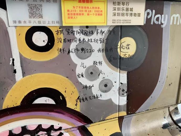 這是誰(shuí)干的?華強(qiáng)北街頭公共鋼琴竟被涂鴉"到此一游"