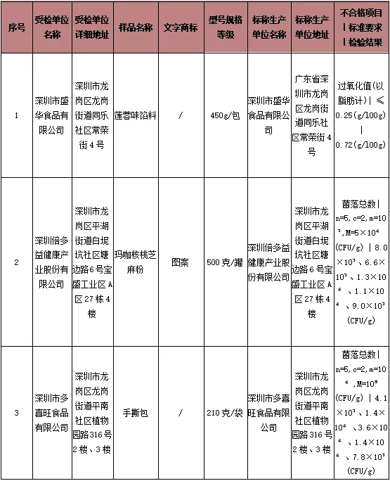最新一期食品抽檢通報