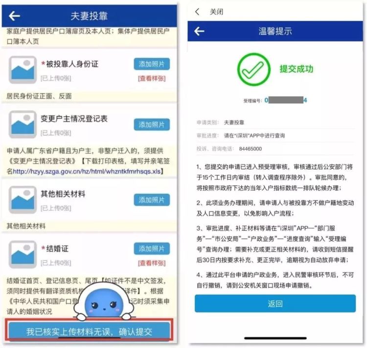 其具體操作流程:詳細(xì)閱讀告知書和辦理須知、選擇申請(qǐng)情形、填寫申請(qǐng)人信息、上傳材料并提交申請(qǐng)。操作提交成功后,市民請(qǐng)保持手機(jī)通訊暢通,受理編號(hào)、補(bǔ)正材料通知,審批結(jié)果等相關(guān)信息將通過短信告知,工作人員將通過系統(tǒng)后臺(tái)對(duì)申請(qǐng)資料進(jìn)行審核。審核通過的,將通知申請(qǐng)人通過預(yù)約方式攜帶申請(qǐng)材料(原件及復(fù)印件)到指定戶政窗口完成“一站式”辦理,群眾無需多次往返奔波。