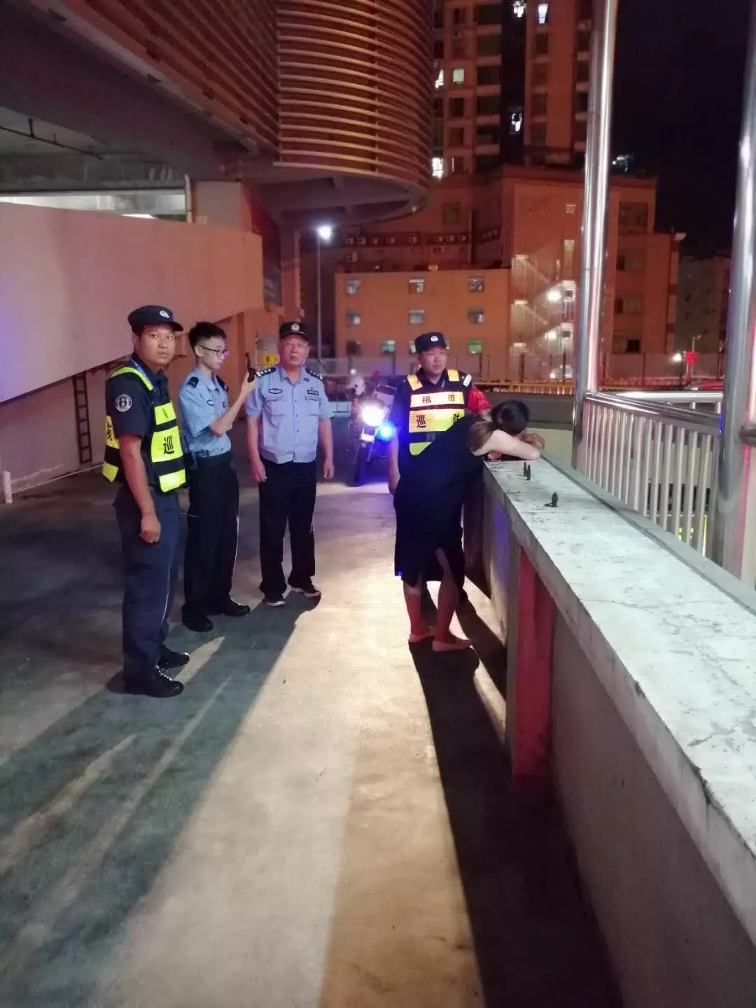 在巡邏到附近的一個簽到點(diǎn)時,馬洪旺接到群眾報(bào)警稱,車港城二樓天橋上有一孕婦想要跳橋輕生。接報(bào)后,馬洪旺迅速趕往現(xiàn)場。馬洪旺得知,報(bào)警人是與輕生女子同行的男子。雙方因發(fā)生糾紛,女子情緒失控后聲稱要跳橋。男子勸阻無果,無奈之下,只好報(bào)警求助。