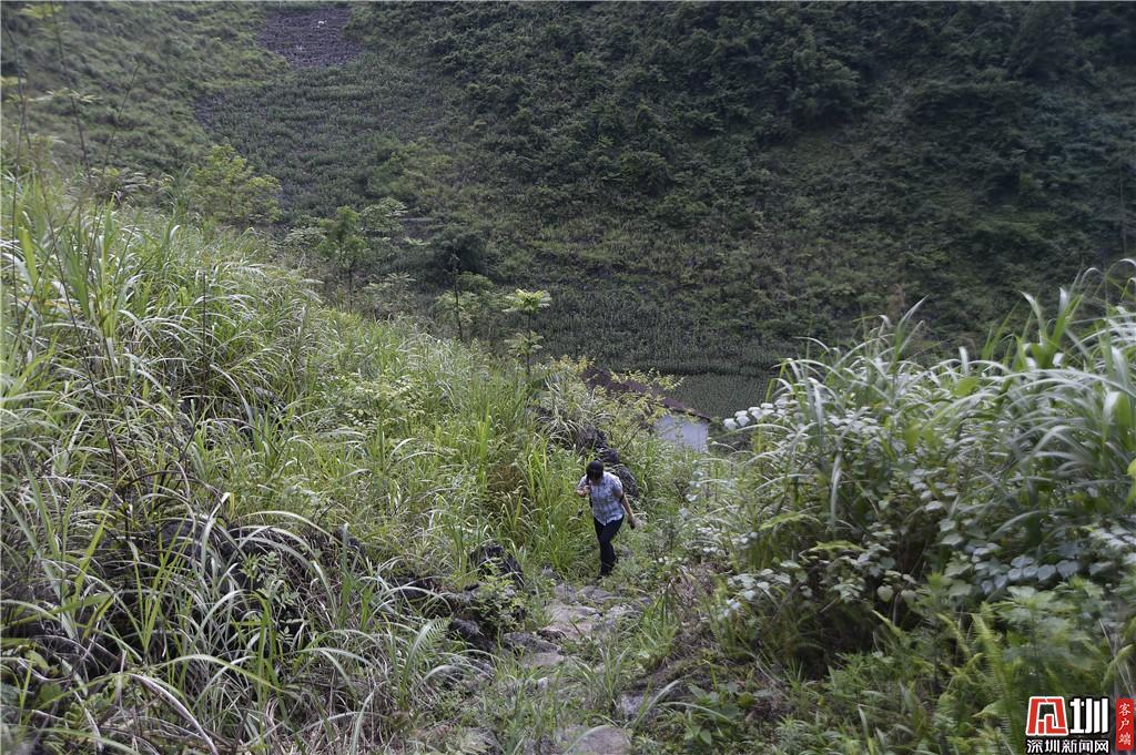 中午12點火車從深圳北站開出,再輾轉(zhuǎn)汽車,我們一行三人到達(dá)河池市東蘭縣已是晚上9點,而這條路,陳毅強每兩個月至少要跑一趟,這一走就是兩年多。走訪貧困戶彭秀勤的老家——弄美村花香鄉(xiāng)的路更是艱辛,盤山公路忽上忽下,在山坳坳里的家,我們走著一條不能稱之為“路”的“路”,而這樣的“路”陳毅強“跑”了半年。我不禁地想,如果換作是我,是否能堅持下來?短短三日的采訪,讓我切身地體會到深圳扶貧干部的難,更深深地被深圳扶貧干部的堅毅、實干、奉獻(xiàn)的“孺子?!本袼騽印S媚_丈量、以眼記錄、用心感受、以筆傳播,作為一名記者,這就是我能為深圳扶貧工作所盡的一份綿薄之力。(余俐潔)