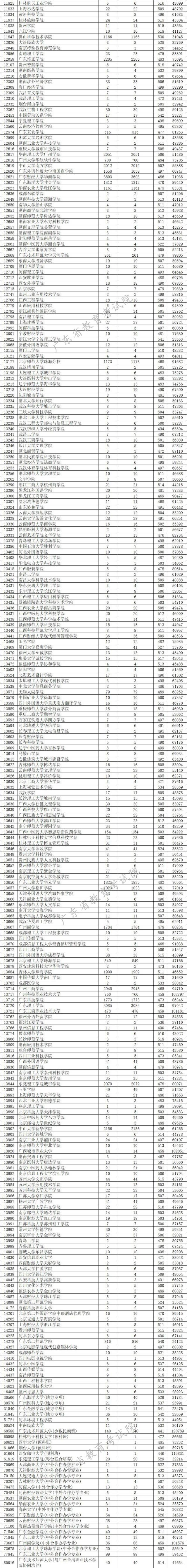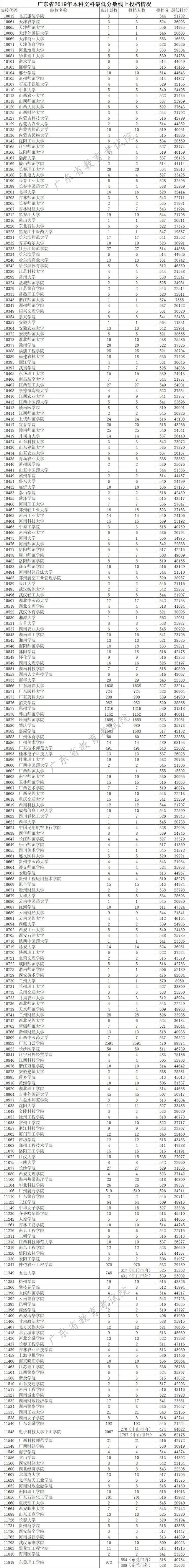 廣東省2019年本科文科最低分數(shù)線上投檔情況
