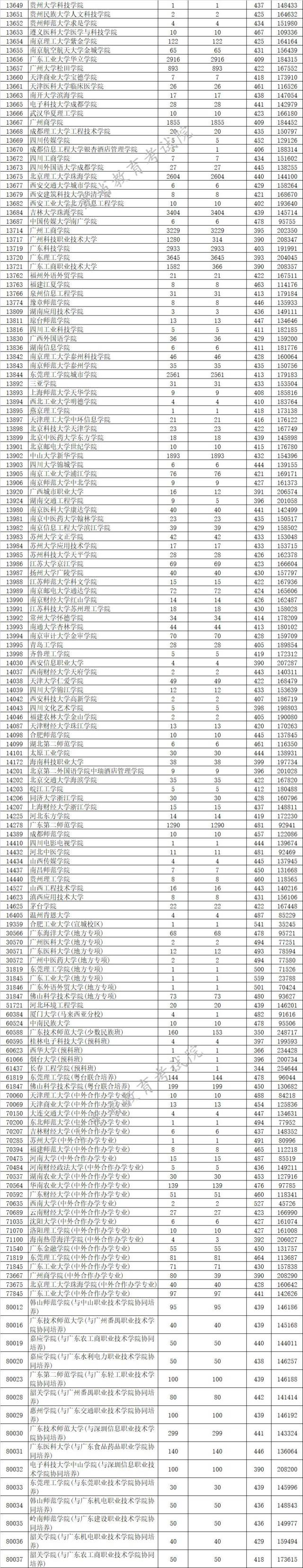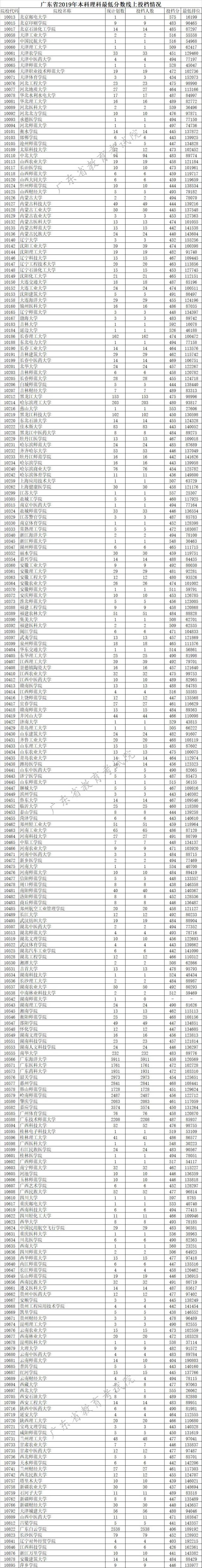 廣東省2019年本科理科最低分數(shù)線上投檔情況
