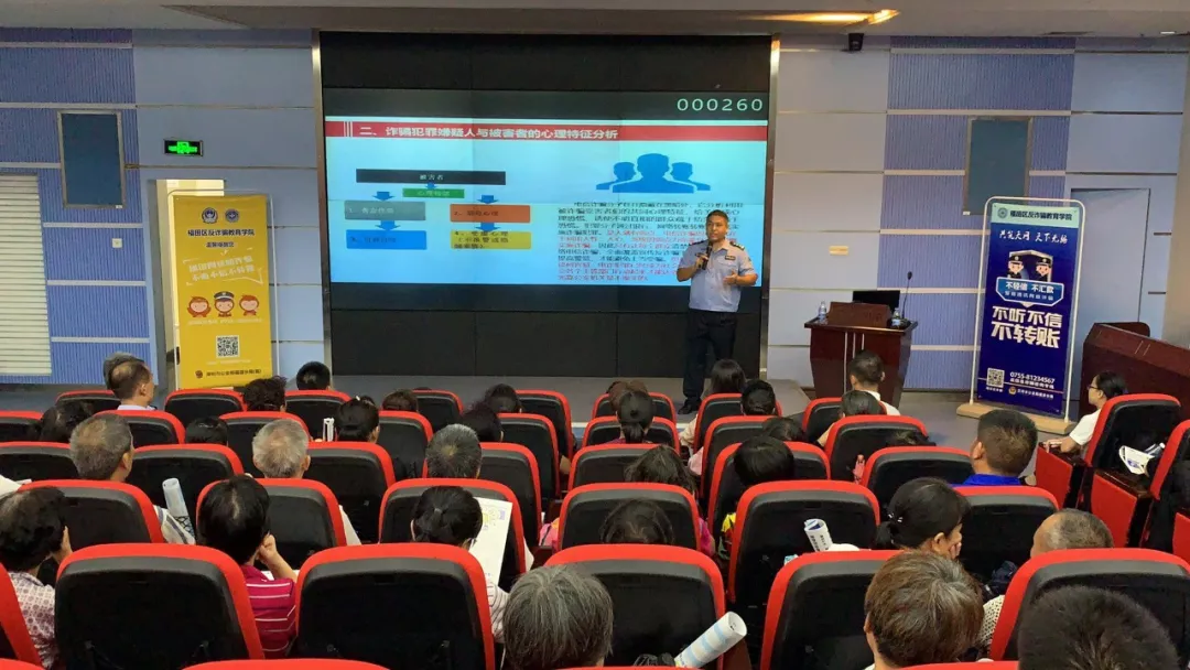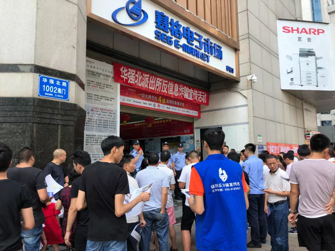 龍尾社區(qū)公開課在上午進(jìn)行,實(shí)到人數(shù)約300人,高訓(xùn)大廈公開課在下午進(jìn)行,實(shí)到人數(shù)約200人。公開課進(jìn)行同時(shí),福田公安分局派出藍(lán)馬甲反詐宣傳隊(duì)員對賽格電子市場商戶進(jìn)行“掃樓”式反詐宣傳,賽格電子市場內(nèi)擁有商戶過千家,近萬名市場從業(yè)人員。本次“掃樓”活動,賽格電子市場參與人數(shù)近5000人,商戶近百余家。藍(lán)馬甲宣傳隊(duì)員向市場內(nèi)從業(yè)人員逐個(gè)進(jìn)行反詐知識講解,真正達(dá)到“落實(shí)一個(gè)人、帶動一群人、影響一片人”的宣傳效果,將反詐騙宣傳輻射到全區(qū)各個(gè)角落。