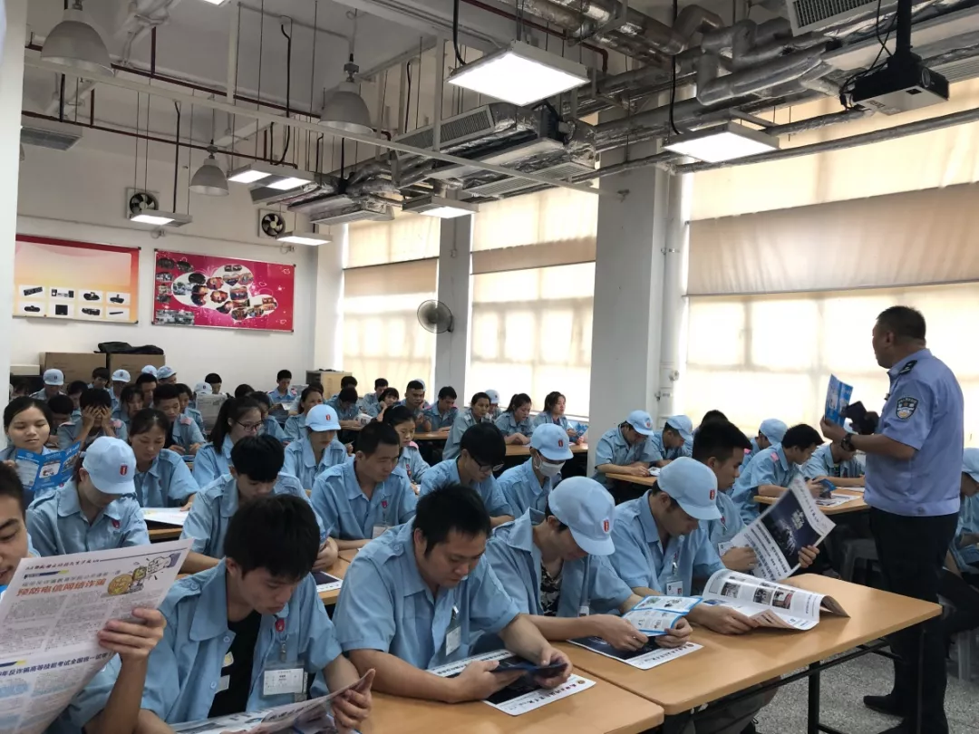 同時(shí),反詐騙教育學(xué)院公開(kāi)課走進(jìn)梅林派出所轄區(qū)成豐電子廠,由反詐騙教育學(xué)院專(zhuān)職講師為廠里近500位員工普及反詐知識(shí),并且組織工友們閱讀反詐騙教育學(xué)院專(zhuān)刊,提高他們的反詐騙意識(shí)。