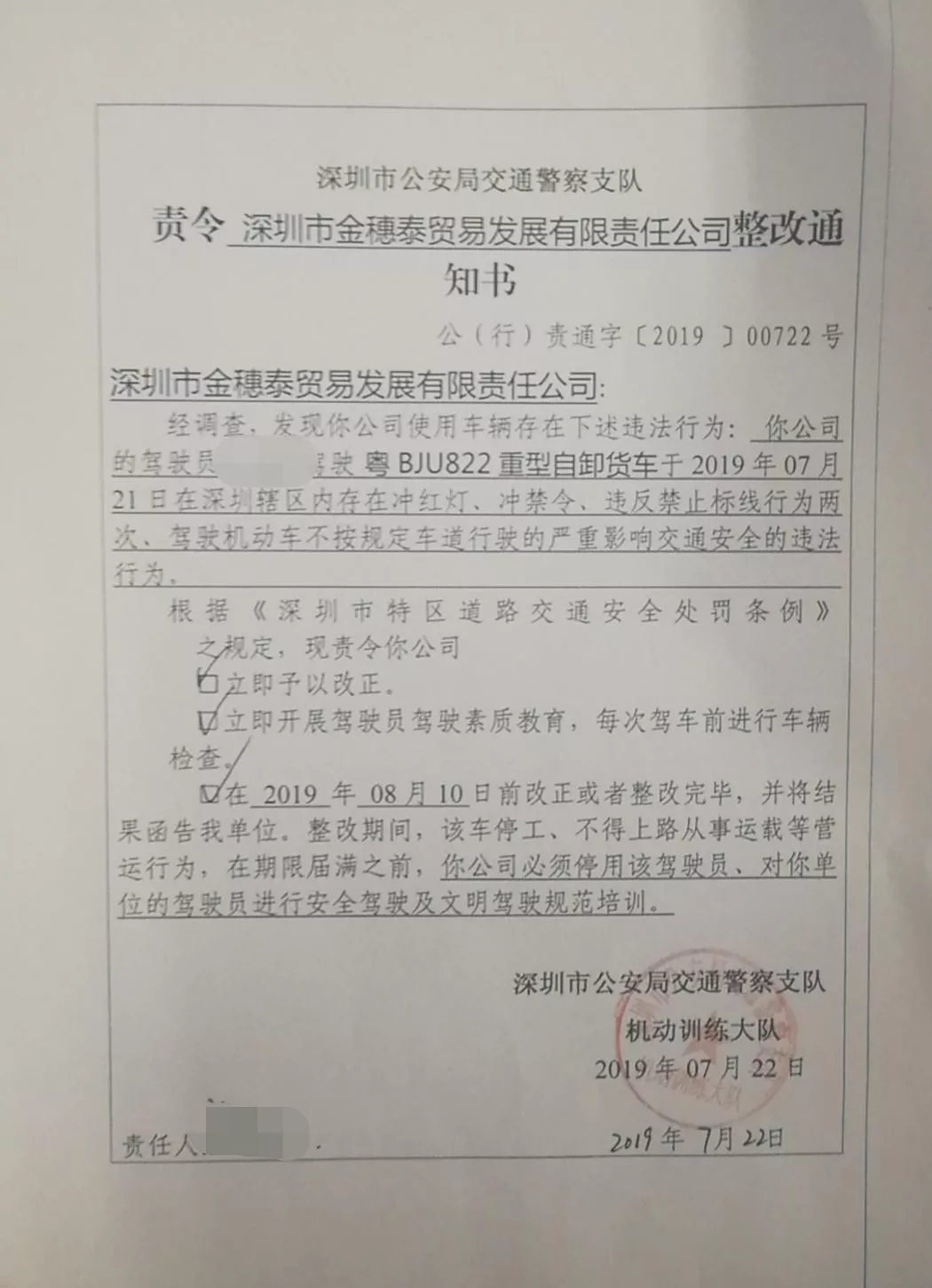 粵BJU822號(hào)泥頭車(chē)停駛排查安全隱患,司機(jī)安全教育學(xué)習(xí)20天;