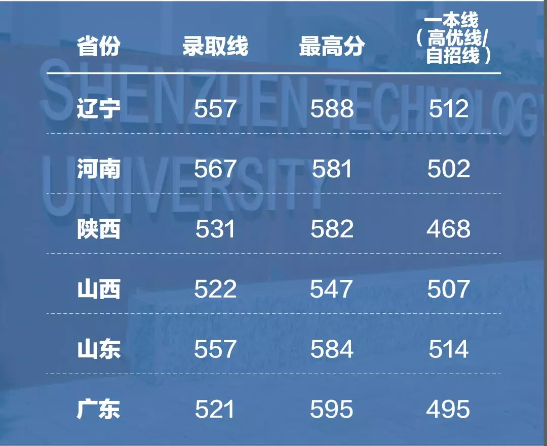 深技大第一次在省外招生即備受青睞,其中河南省、陜西省高于一本線60分以上錄??;遼寧省、山東省高于一本線40分以上錄取。