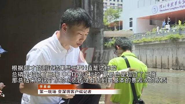 記者隨后使用快速檢測包對這個斷面的水質(zhì)進行檢測,發(fā)現(xiàn)比起下游來說,這里的污染指數(shù)明顯高了很多。