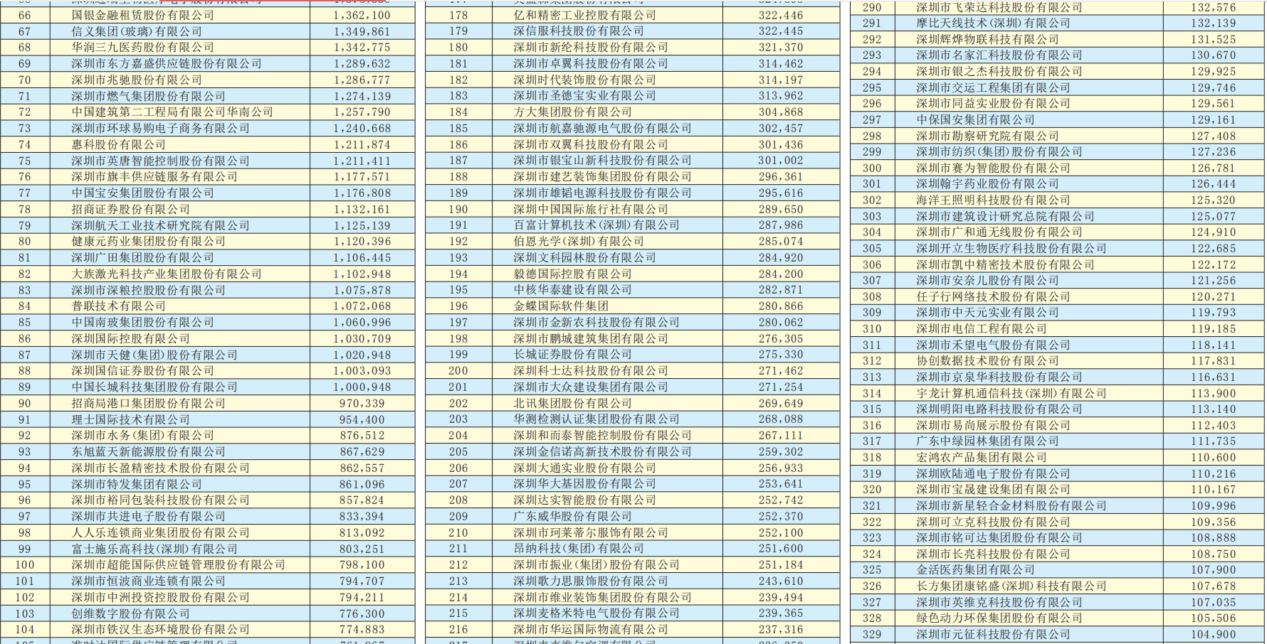 中國平安保險(集團(tuán))股份有限公司、華為投資控股有限公司、正威國際集團(tuán)有限公司居排行榜前三位?!?019深圳500強(qiáng)企業(yè)發(fā)展報告》在中國企業(yè)聯(lián)合會、中國企業(yè)家協(xié)會的指導(dǎo)下,在有關(guān)部門的支持下,由深圳企聯(lián)編撰,旨在加快打造粵港澳大灣區(qū)核心引擎城市,將深圳建設(shè)成為具有世界影響力的創(chuàng)新創(chuàng)意之都,做強(qiáng)做優(yōu)實體經(jīng)濟(jì),促進(jìn)企業(yè)品牌化、國際化的高質(zhì)量發(fā)展,增強(qiáng)各界對企業(yè)社會價值的廣泛認(rèn)知,為深圳經(jīng)濟(jì)創(chuàng)造新的可持續(xù)增長動能。