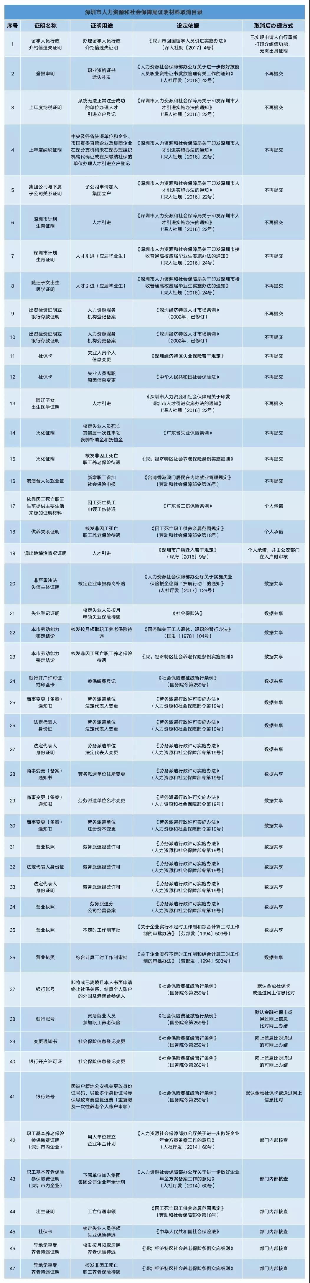 深圳特區(qū)報(bào)2019年7月31日訊 好消息,為了減證便民、優(yōu)化服務(wù),深圳市人力資源和社會(huì)保障局日前取消了47項(xiàng)證明材料!