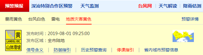 今天雨勢減弱,全市地質災害黃色預警已經生效