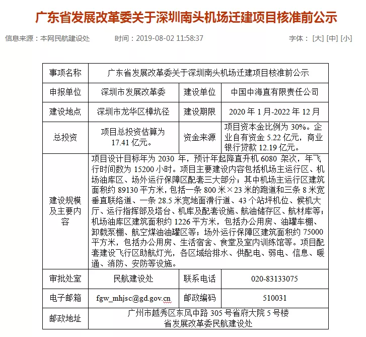 《關(guān)于深圳南頭機(jī)場遷建項(xiàng)目核準(zhǔn)前公示》。