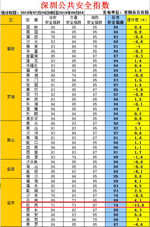 深圳最新公共安全指數(shù)發(fā)布 寶安區(qū)松崗街道74分全市墊底