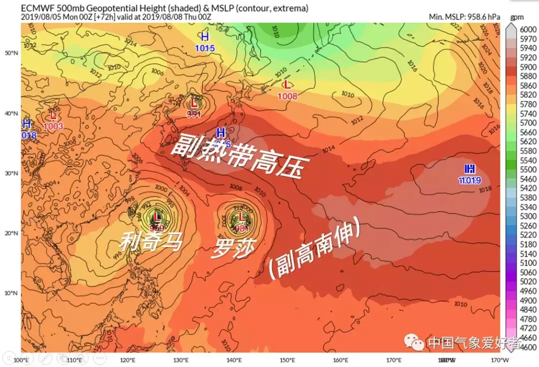 羅莎臺風(fēng)將會是一個又大又強(qiáng)的臺風(fēng)。由于個頭太大,副高壓不住,所以它不會來我國,最大可能是緩慢北上登陸日本。不過,羅莎將會阻止副高在利奇馬南側(cè)西伸,并且對利奇馬有互斥作用,是利奇馬臺風(fēng)的“導(dǎo)演”之一??傮w看來,羅莎將會對利奇馬施加向西的作用力,促使利奇馬更靠近我國。