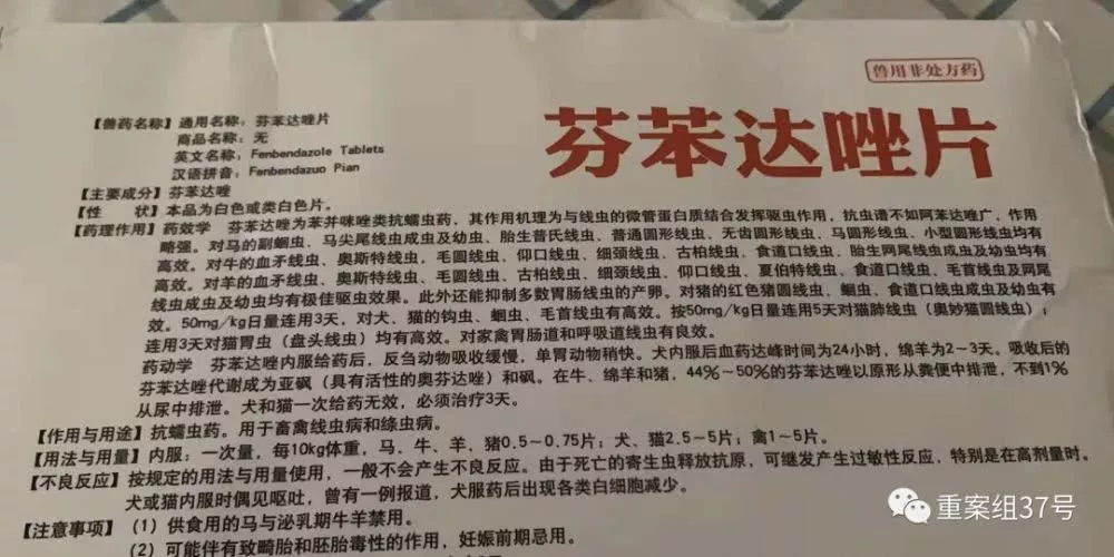 專家表示,芬苯達(dá)唑畢竟是獸用驅(qū)蟲藥,它的劑型是為了方便投喂動(dòng)物,安全性也僅僅達(dá)到動(dòng)物藥標(biāo)準(zhǔn),其對(duì)人體的毒副反應(yīng)、藥物相互作用都是未知數(shù),無法預(yù)測服用后會(huì)發(fā)生什么后果。