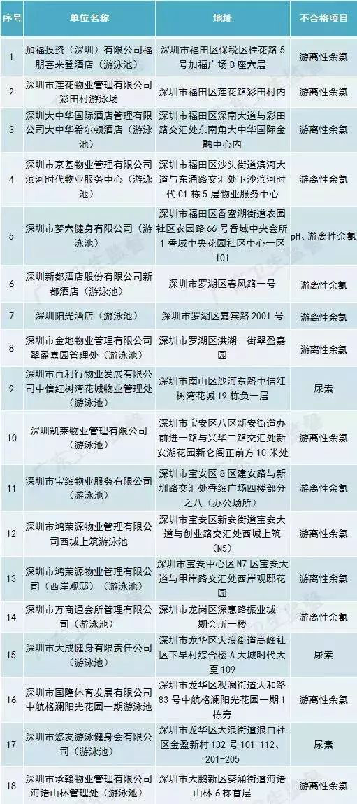 深圳(18家不合格)