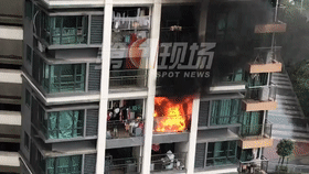 火苗和黑煙不斷從陽臺躥出