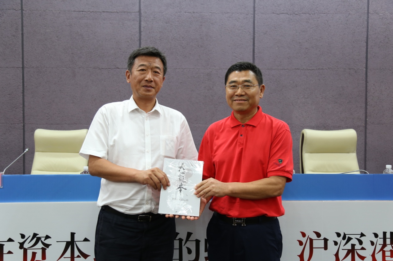 △廣藥集團(tuán)常務(wù)副總經(jīng)理程寧為廣東上市公司協(xié)會(huì)副秘書(shū)長(zhǎng)封志敏贈(zèng)書(shū)