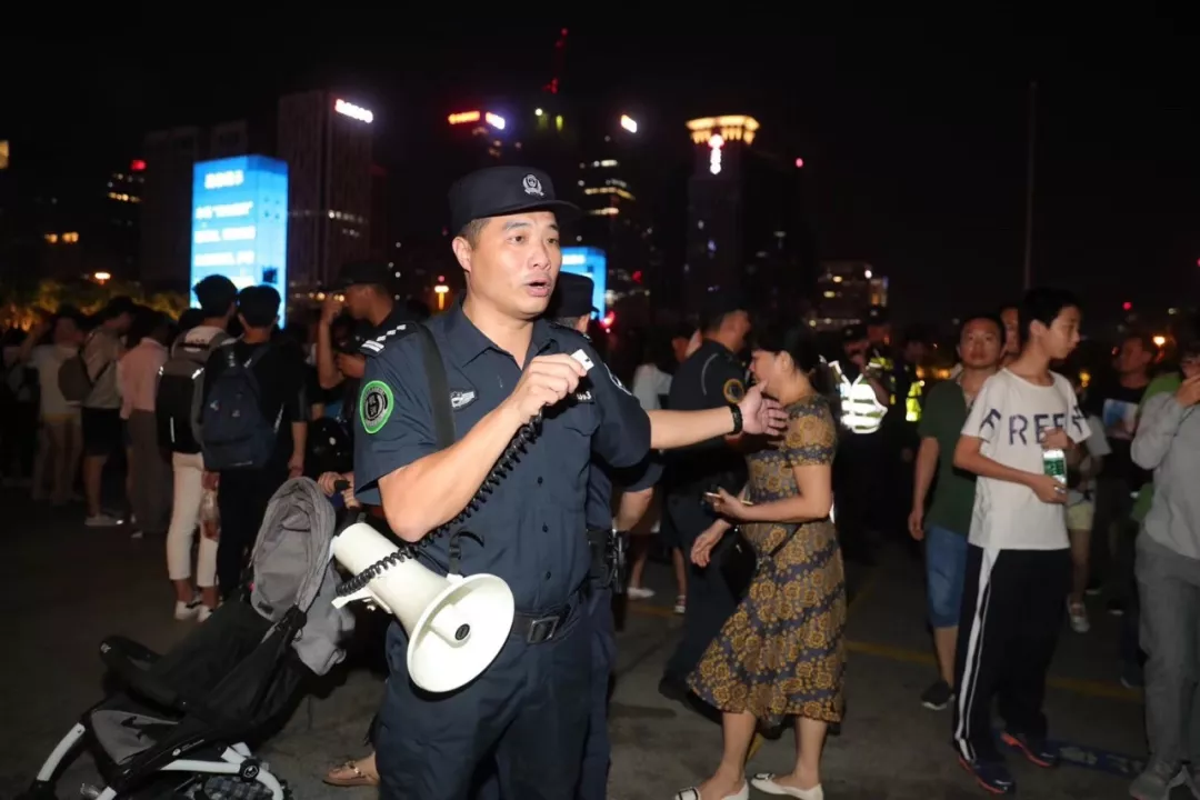 “注意安全,不要擁擠,照顧好老人和小孩。”某廣場擁擠的人群中,福田公安分局機動訓(xùn)練大隊副大隊長黃裕青拿著大喇叭喊道。他的臉熱得通紅,汗珠大顆大顆地往下掉,但卻始終沒停下巡邏的腳步。嗓子沙啞了,他便喝口水潤潤,繼續(xù)在人群中穿梭,在維護(hù)秩序的同時,為有需要的人提供幫助。