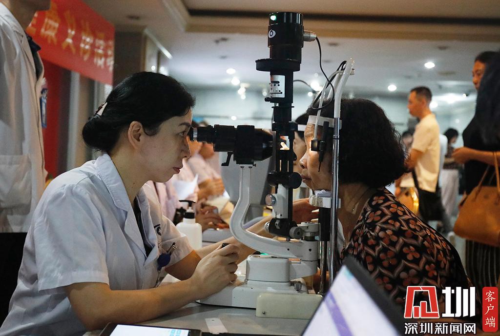 深圳市眼科醫(yī)院防盲科副主任曾琨正在給職工檢查