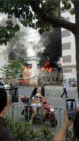 火不斷往外冒,產(chǎn)生了大量黑煙