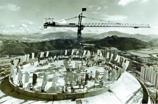 1984年9月4日,國(guó)貿(mào)大廈封頂。江式高攝