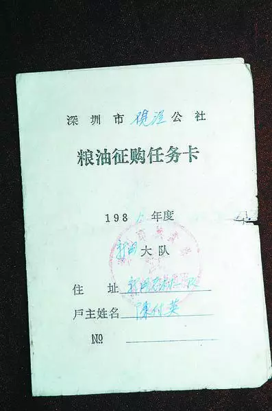 1981年,深圳市觀瀾公社糧油征購(gòu)任務(wù)卡