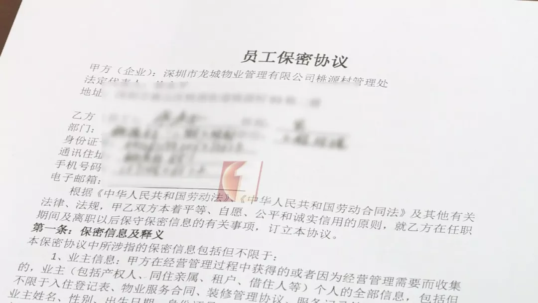 管理處提供了公司和這兩位員工在幾年前簽訂的保密協(xié)議,丁某某為客戶部高級(jí)經(jīng)理,官某某為工程部經(jīng)理,保密協(xié)議中第一條就是業(yè)主信息的隱私保護(hù)。