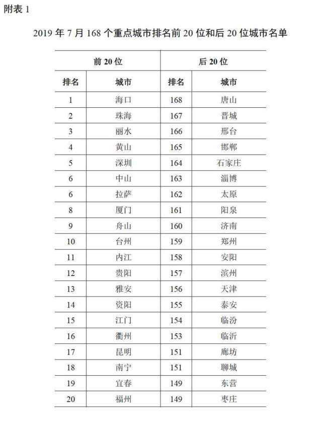 原標題:1-7月全國空氣質量深圳排第三,前20名廣東占6席