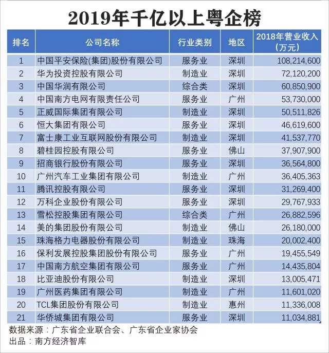 2019廣東企業(yè)500強(qiáng)榜單!