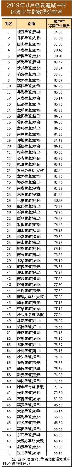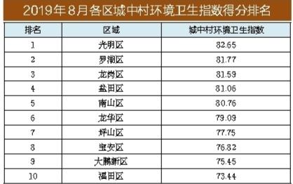 全市城中村首次單獨(dú)“應(yīng)考”,成績?nèi)绾??根?jù)公布的測評結(jié)果,深圳市城中村環(huán)境衛(wèi)生指數(shù)為79.05分,光明區(qū)、羅湖區(qū)、龍崗區(qū)城中村環(huán)境衛(wèi)生指數(shù)位列三甲,城中村人口密度較大的福田區(qū)則在首次公布的城中村環(huán)境衛(wèi)生指數(shù)排名中墊底。排名前3的街道分別是桂園街道(羅湖)、馬田街道(光明)和園山街道(龍崗),而排名后3的街道分別是寶龍街道(龍崗)、燕羅街道(寶安)和大鵬辦事處(大鵬)。