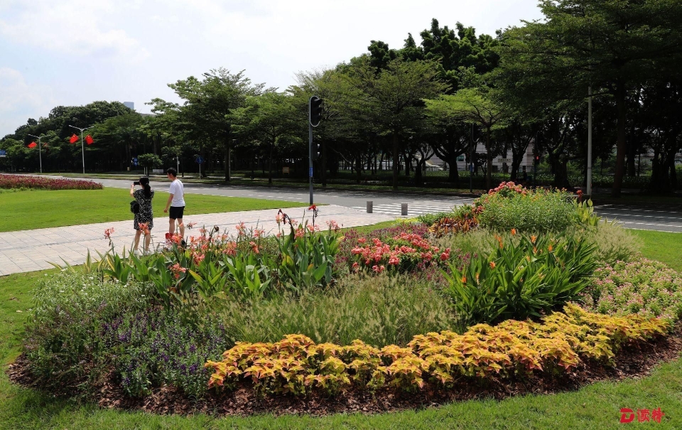 除了花帶,市城市管理和綜合執(zhí)法局還在深南大道行人過(guò)馬路的地方新打造了10個(gè)花園路口,每個(gè)小花園5-10平方米,結(jié)合原有路口的景觀設(shè)計(jì),融入海綿生態(tài)理念,增加蜜源、觀花和色葉植物,組合成花境,讓在路口等紅綠燈的市民能欣賞到深圳的自然之美。