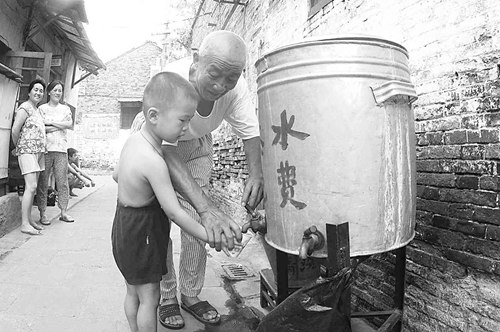 退休工人祝正祥連忙端來(lái)一大碗茶水,