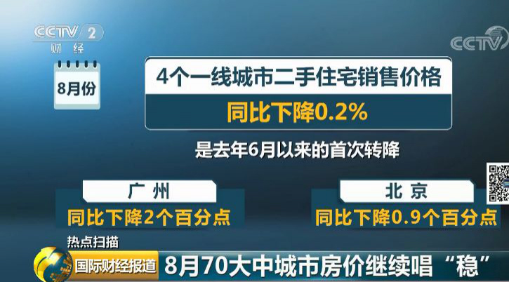 值得一提的是,代表一線城市房價風向標的二手住宅銷售價格同比下降0.2%,是去年6月以來的首次轉(zhuǎn)降,其中,廣州二手住宅銷售價格同比下降2個百分點,北京下降0.9個百分點。