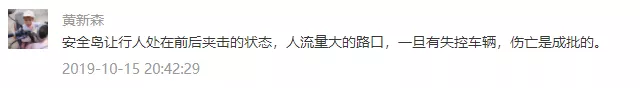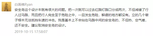 安全島絕對(duì)安全么,顯然不是。事實(shí)上,設(shè)置安全島的初衷是為了提升行人過街效率和道路利用率,它是適應(yīng)越來(lái)越寬的城市道路,在行人與車之間尋求通行效率最大化的產(chǎn)物。以10月15日的車禍為例,面對(duì)動(dòng)能巨大的奔馳越野車,哪怕是修一堵高墻恐怕也難阻擋。因此,所謂安全島,只能做到相對(duì)安全,而非不可逾越的屏障。