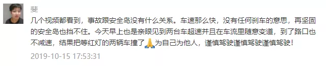 10月15日下午,福田區(qū)香梅路與蓮花路口處,再次發(fā)生小車沖進(jìn)安全島事故,致兩人死亡、一人受傷。據(jù)媒體報(bào)道,2019年以來(lái),深圳已發(fā)生了5起車輛撞上安全島的交通事故。悲劇發(fā)生后,市政府迅速責(zé)成交通部門馬上拿出安全島安全防護(hù)措施確保安全,體現(xiàn)了政府對(duì)市民安全的重視。