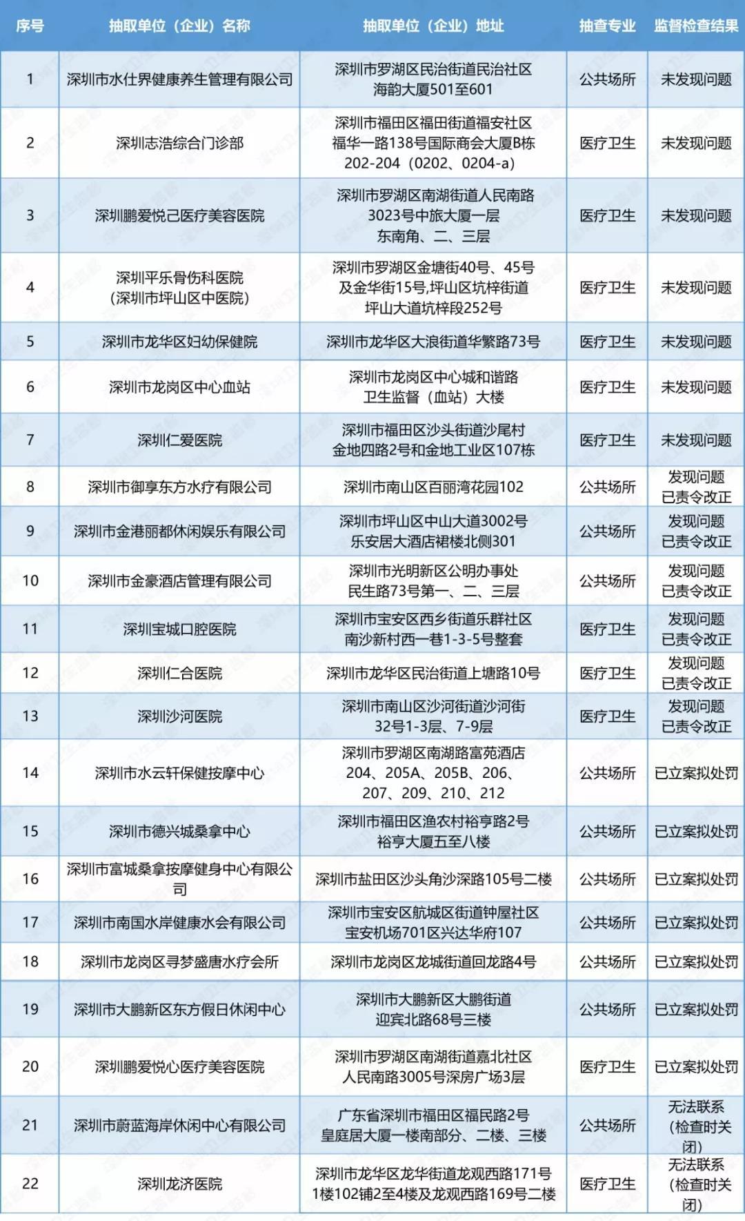 曝光!深圳9月雙隨機抽查,這7家公共場所和醫(yī)療機構(gòu)被處罰