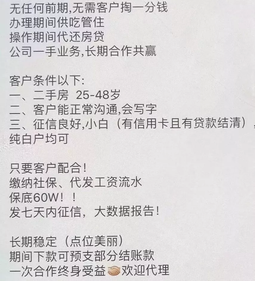 為了從銀行貸到款,中介們開始無所不用其極,其中最普遍的就是包裝客戶資質,業(yè)內稱為“包裝貸款”。