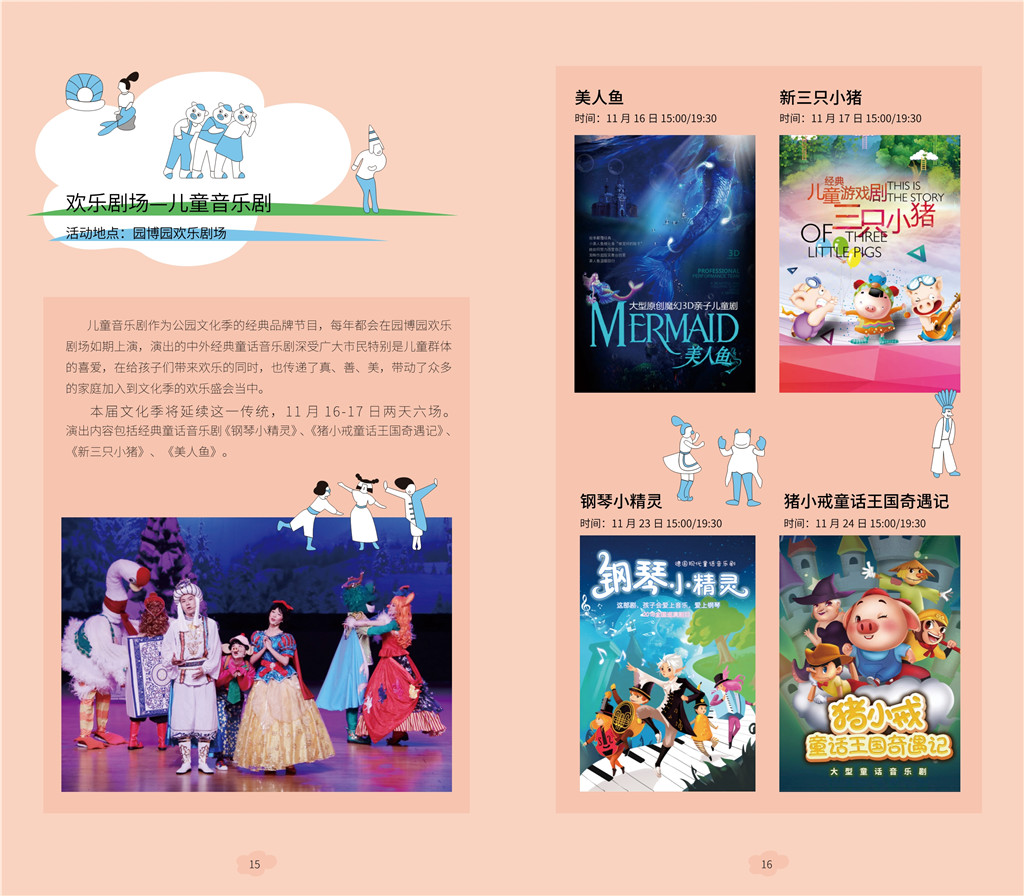 兒童音樂劇是公園文化季的經(jīng)典品牌節(jié)目。11月16日、17日每天3場兒童音樂劇在園博園歡樂劇場舉行,表演中外經(jīng)典童話音樂劇。