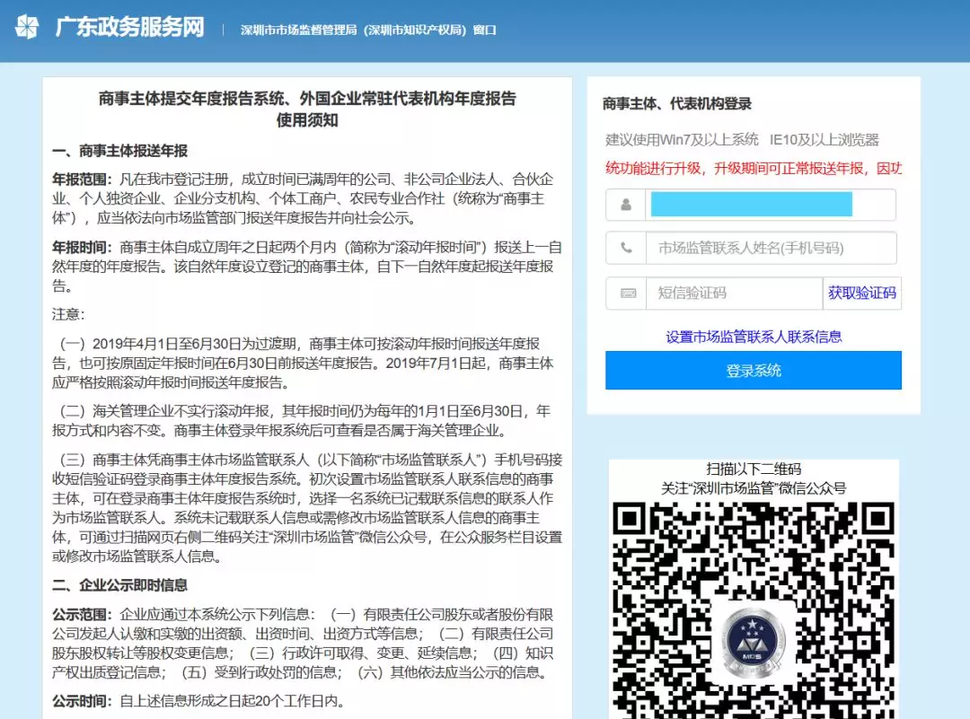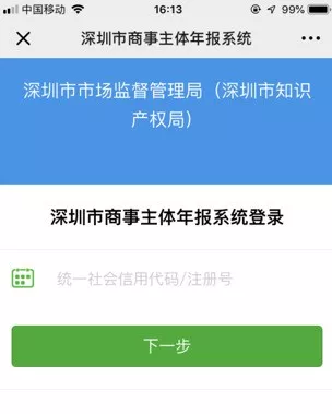 第一步:通過掃描新版營業(yè)執(zhí)照二維碼或進入深圳市場監(jiān)管官微點擊“公眾服務(wù)”欄目下的“商事主體年報”進入手機年報登錄界面。