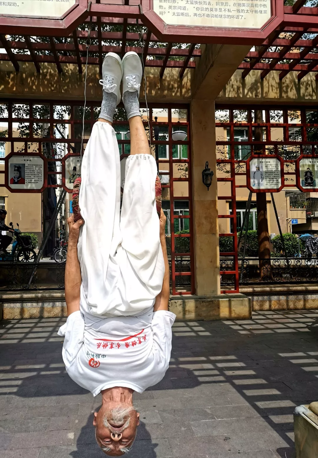 魏宗信還自信地表示:“我還能在吊環(huán)上倒立,在雙桿上玩翻身?!泵刻焐衔绾拖挛缂悠饋?,他要運(yùn)動(dòng)兩三個(gè)小時(shí)。