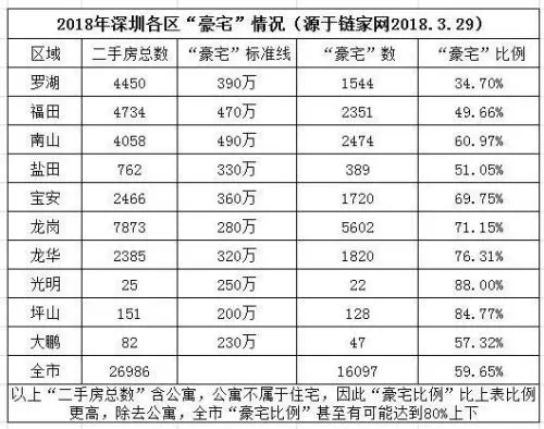 2015年,深圳普通住房標(biāo)準(zhǔn)出臺(tái),規(guī)定南山總價(jià)在490萬(wàn)以上、福田總價(jià)在470萬(wàn)、羅湖總價(jià)在390萬(wàn)以上的房源均屬于豪宅,需要按照豪宅的標(biāo)準(zhǔn)交稅。