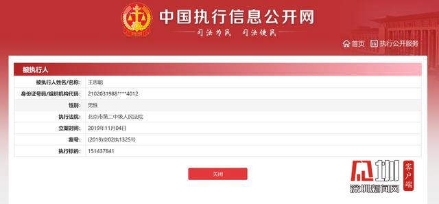 有媒體發(fā)現(xiàn)中國(guó)執(zhí)行信息公開(kāi)網(wǎng)上于11月4日新增了王思聰?shù)囊粭l被執(zhí)行人信息,執(zhí)行標(biāo)的為1億5143萬(wàn)7841元,執(zhí)行法院為北京市第二中級(jí)人民法院。巧合的是,網(wǎng)友發(fā)現(xiàn)王思聰微博設(shè)置為半年可見(jiàn)。
