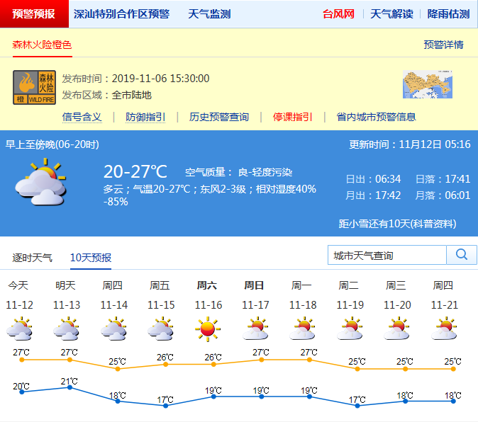 深圳市氣象局預(yù)計(jì)12日多云,早晚有輕霧或輕度霾,空氣干燥, 氣溫20-27℃;東北風(fēng)2-3級;相對濕度40%-90% 。12日多云,早晚有輕霧或霾,20-27℃;13日夜間至14日有冷空氣影響,風(fēng)力加大,最大陣風(fēng)7-8級,氣溫下降3℃左右;15-18日晴天。