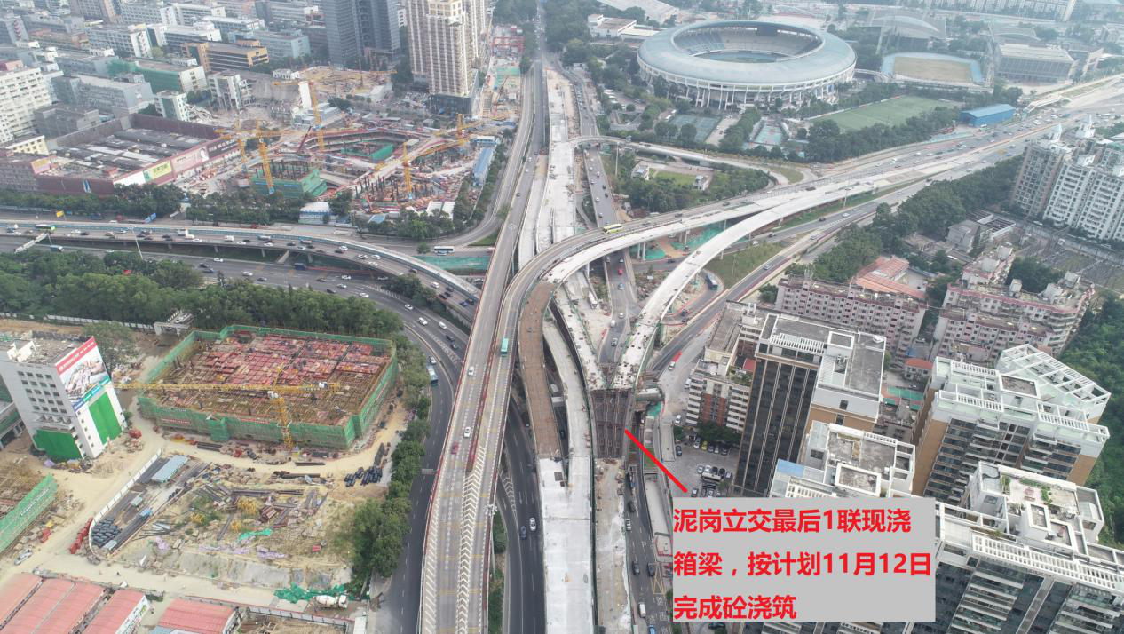 坂銀通道工程北環(huán)立交、泥崗立交橋梁主體工程完成最后1聯砼箱梁澆筑